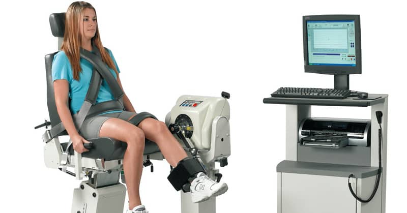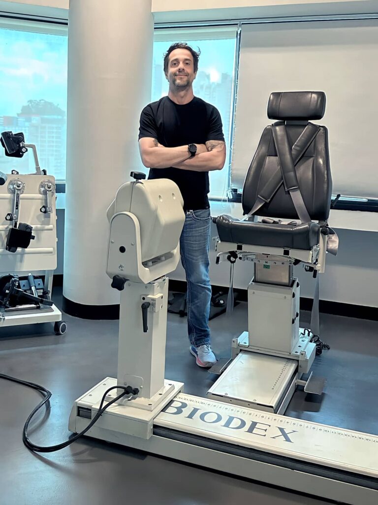 imagem ilustrativa de atleta numa avaliação isocinética com Biodex™.